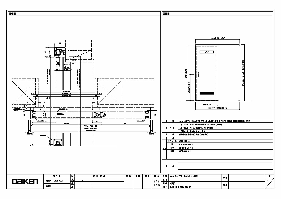 「ずっと ここちいいね」を実現する企業 DAIKEN 建材製品情報 図面 データ検索 pdf Z_D_2022-HA-OU-HK-08-1645-2097-M-1.pdf webp Z_D_2022-HA-OU-HK-08-1645-2097-M-1.webp 製品図 1645幅 2000高 錠付 三面図 データ分類_第1分類 図面 データ分類_第2分類 室内ドア データ分類_第3分類 hapia アウトセットドア データ分類_第4分類 アウトセット吊戸・片引 データ分類_第5分類 錠付 データ分類_第6分類 08 ファイル種類 製品図 見出し 製品図 キャプション 1645幅 2000高 錠付 三面図 改定日 2022/06/21 備考