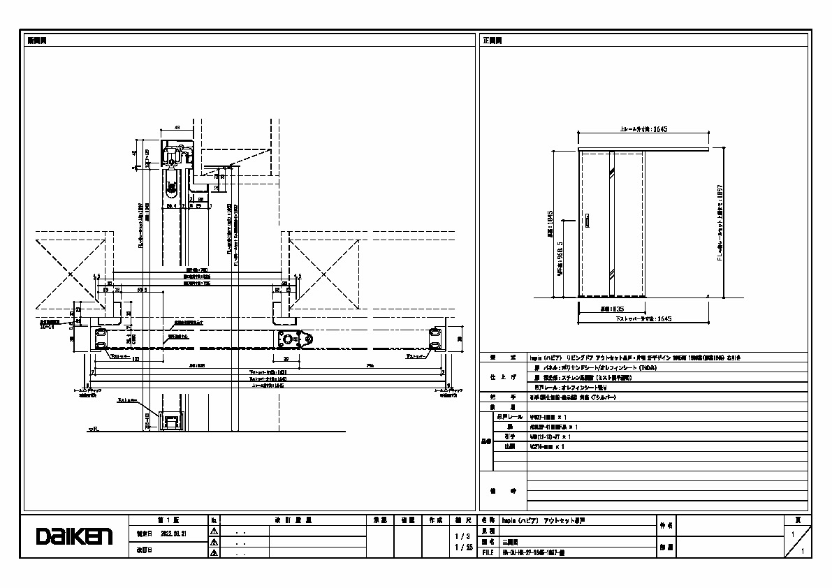 「ずっと ここちいいね」を実現する企業 DAIKEN 建材製品情報 図面 データ検索 pdf Z_D_2022-HA-OU-HK-2P-1645-1897-M-1.pdf webp Z_D_2022-HA-OU-HK-2P-1645-1897-M-1.webp 製品図 1645幅 1800高 錠付 三面図 データ分類_第1分類 図面 データ分類_第2分類 室内ドア データ分類_第3分類 hapia アウトセットドア データ分類_第4分類 アウトセット吊戸・片引 データ分類_第5分類 錠付 データ分類_第6分類 2P ファイル種類 製品図 見出し 製品図 キャプション 1645幅 1800高 錠付 三面図 改定日 2022/06/21 備考