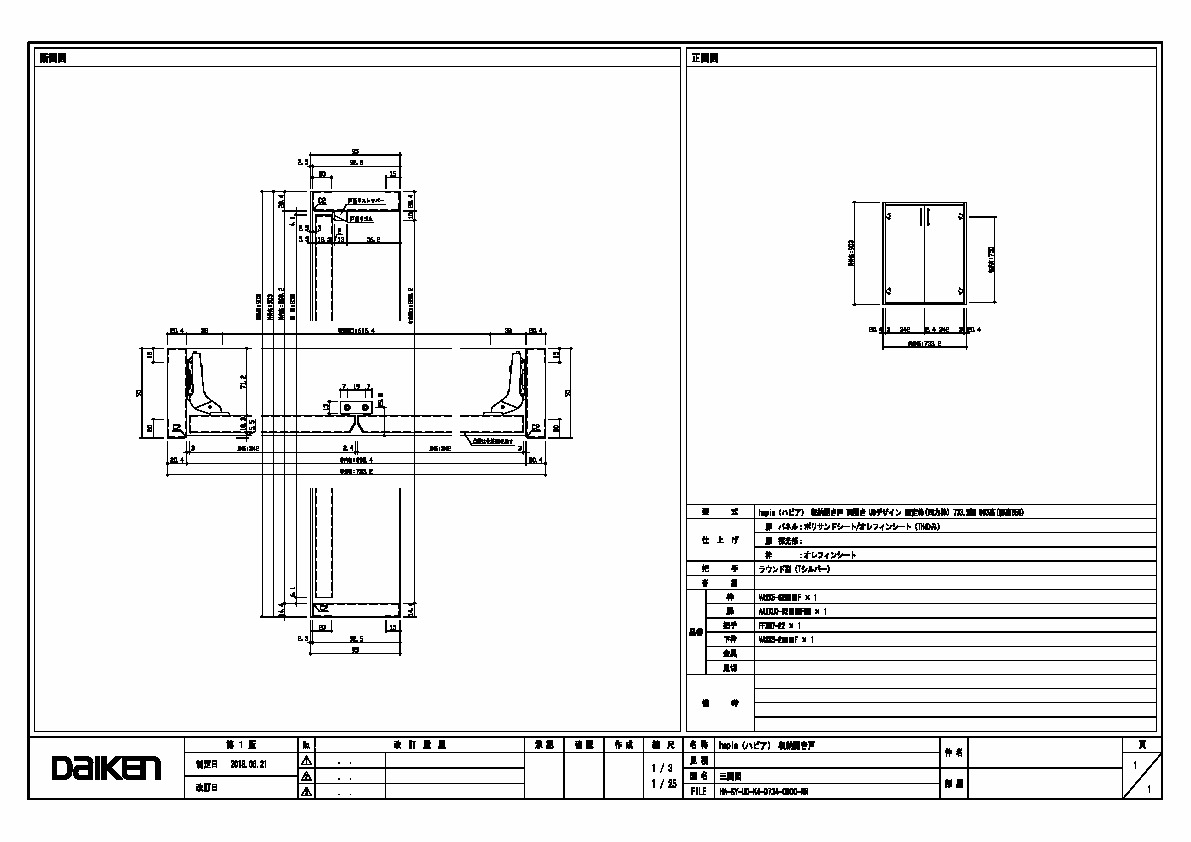 | キャプション | U0デザイン 734幅 900高 三面図 |