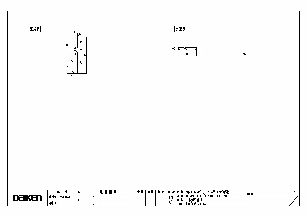 「ずっと ここちいいね」を実現する企業 DAIKEN 建材製品情報 図面 データ検索 pdf Z_D_2022-HA-SZ_HABAKI-M-7-50-1.pdf webp Z_D_2022-HA-SZ_HABAKI-M-7-50-1.webp 製品図 巾木(MDF)7×50mm 三面図 データ分類_第1分類 図面 データ分類_第2分類 造作部材 データ分類_第3分類 hapia システム造作部材 データ分類_第4分類 巾木/回り縁 データ分類_第5分類 巾木 データ分類_第6分類 MDF ファイル種類 製品図 見出し 製品図 キャプション 巾木(MDF)7×50mm 三面図 改定日 2022/06/21 備考
