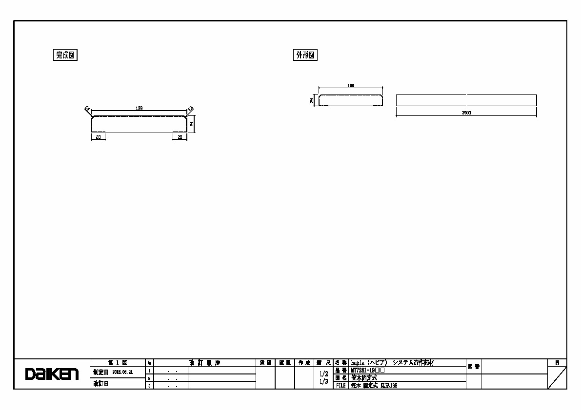 「ずっと ここちいいね」を実現する企業 DAIKEN 建材製品情報 図面 データ検索 pdf Z_D_2022-HA-SZ_KASAGI-K-138-1.pdf webp Z_D_2022-HA-SZ_KASAGI-K-138-1.webp 製品図 笠木 固定式 見込138 三面図 データ分類_第1分類 図面 データ分類_第2分類 造作部材 データ分類_第3分類 hapia システム造作部材 データ分類_第4分類 笠木 データ分類_第5分類 笠木 ファイル種類 製品図 見出し 製品図 キャプション 笠木 固定式 見込138 三面図 改定日 2022/06/21 備考
