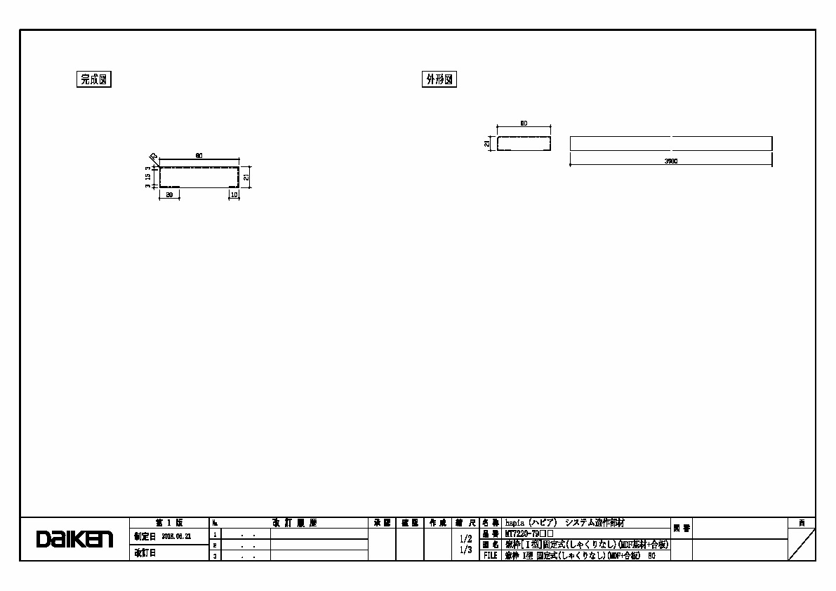 | キャプション | 窓枠 I型 固定式(しゃくりなし)(MDF+合板) 80 三面図 |