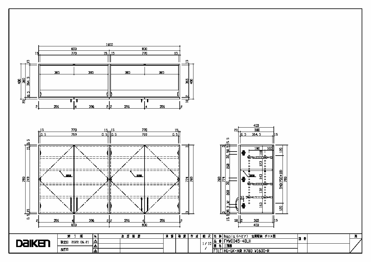 | キャプション | 天袋 1600幅 三面図 |