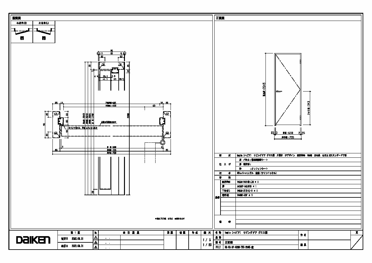 | キャプション | 755幅 2045高 85ハンドル 空錠 三面図 |