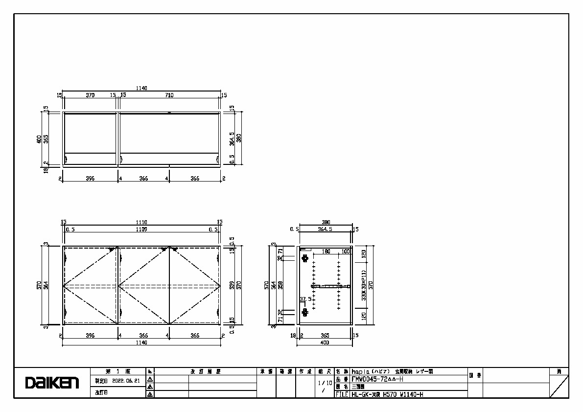 | キャプション | 天袋 1140幅 三面図 |