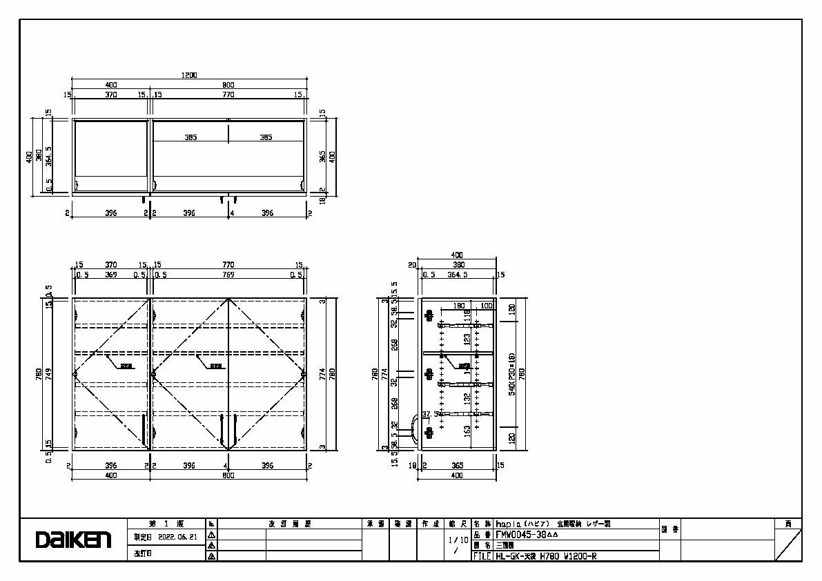 | キャプション | 天袋 1200幅 三面図 |