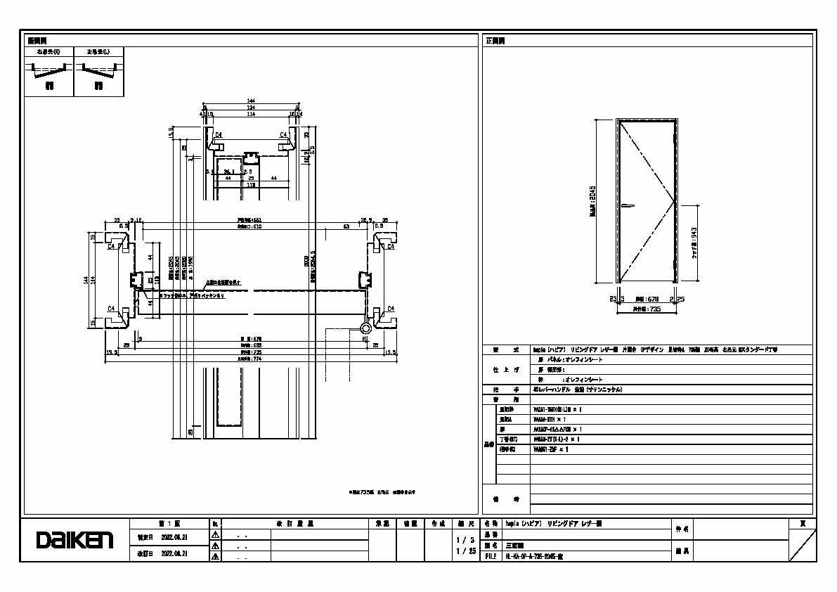 | キャプション | 735幅 2045高 85ハンドル 空錠 三面図 |
