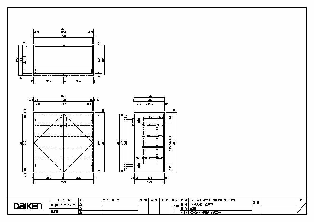 | キャプション | 下部収納 800幅 三面図 |