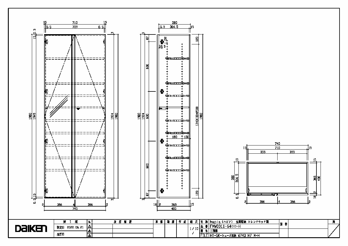 | キャプション | シューズ収納 740幅 H7 三面図 |