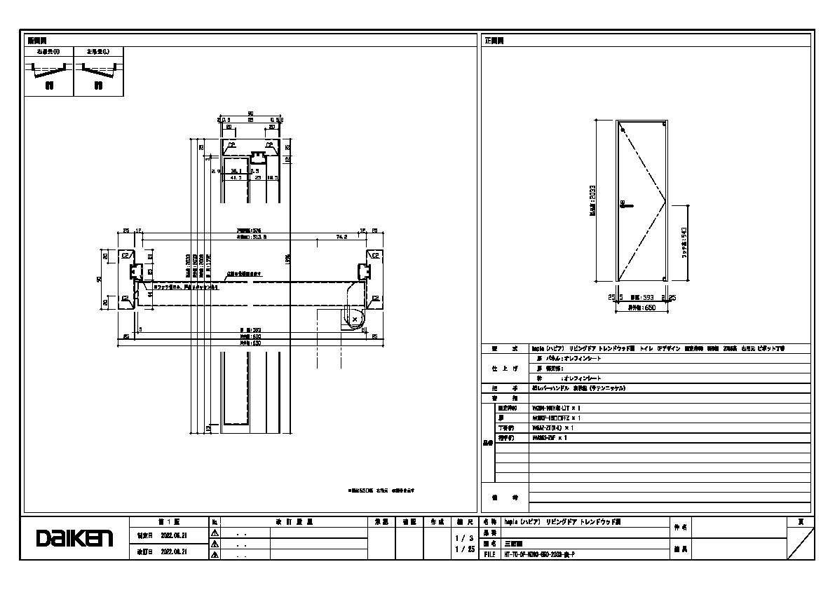 | キャプション | 650幅 2033高 85ハンドル 表示錠 三面図 |