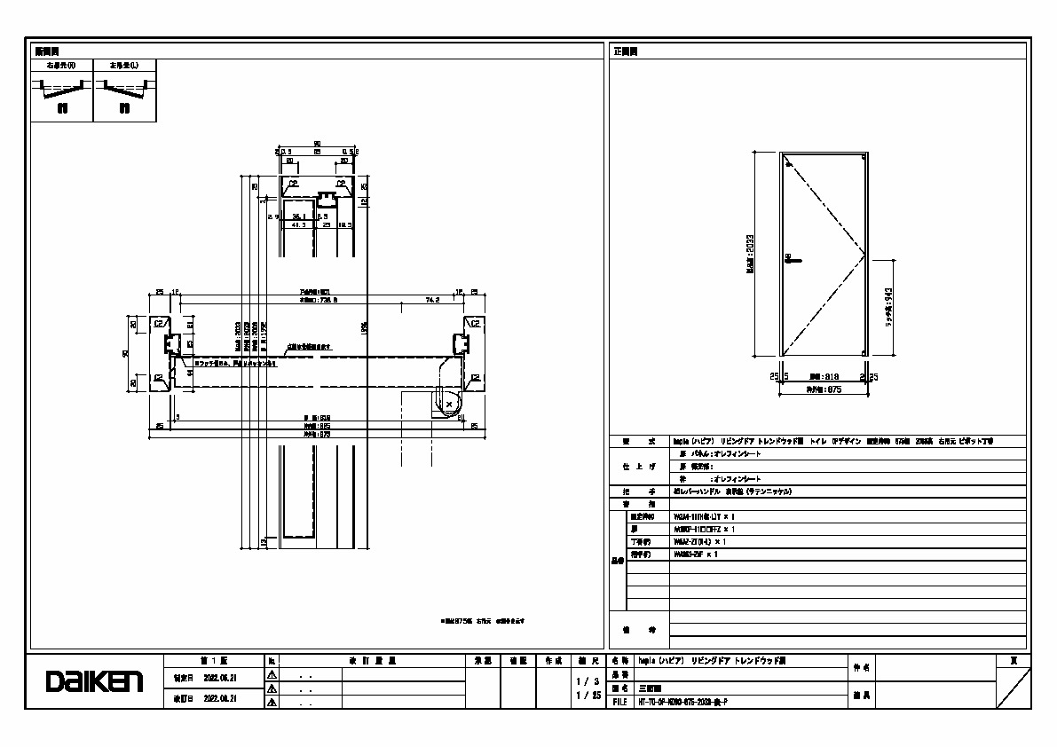 | キャプション | 875幅 2033高 85ハンドル 表示錠 三面図 |