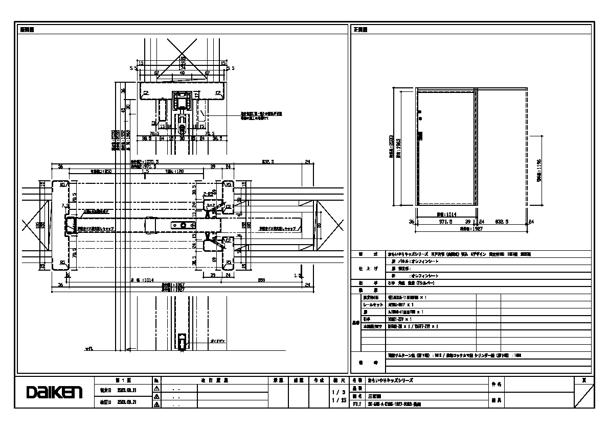 | キャプション | 1927幅 2033高 引手 角座 空錠 美和カマ錠 シリンダー錠+両側サムターン錠 |