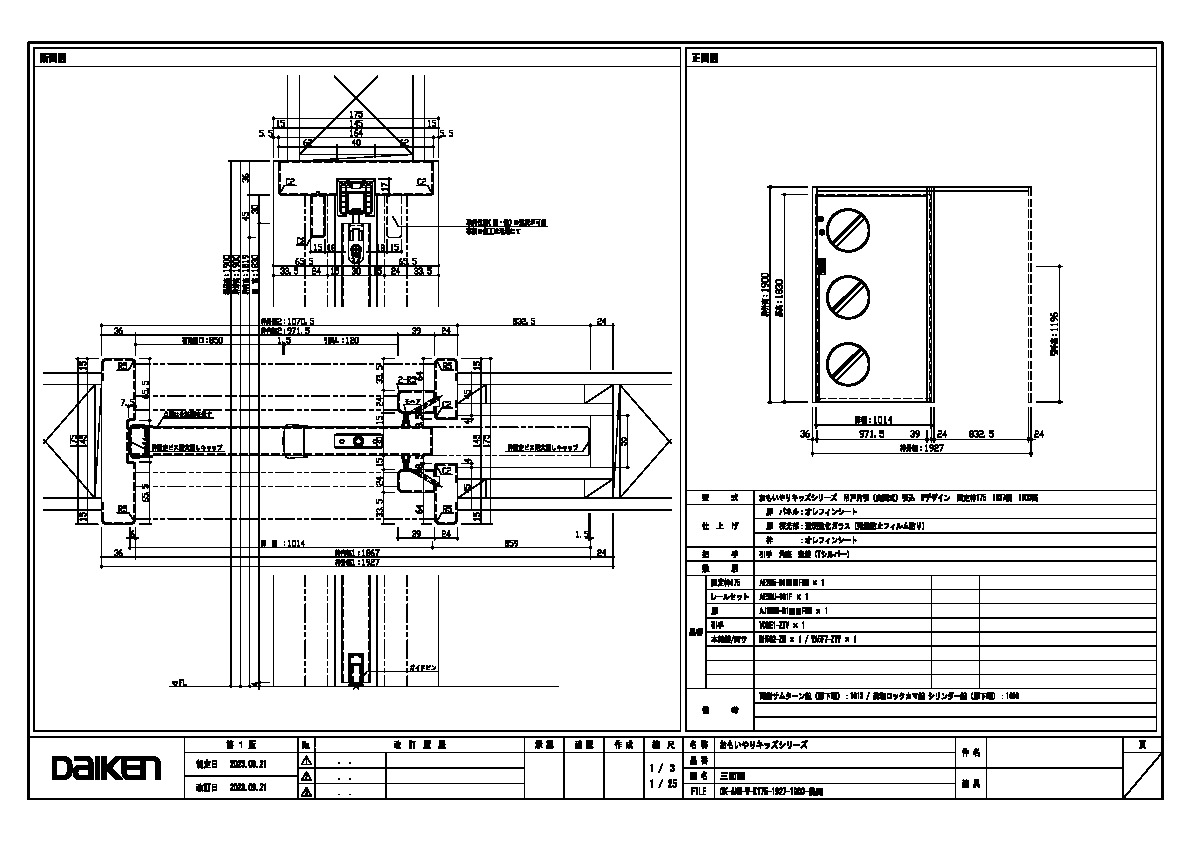 | キャプション | 1927幅 1900高 引手 角座 空錠 美和カマ錠 シリンダー錠+両側サムターン錠 |