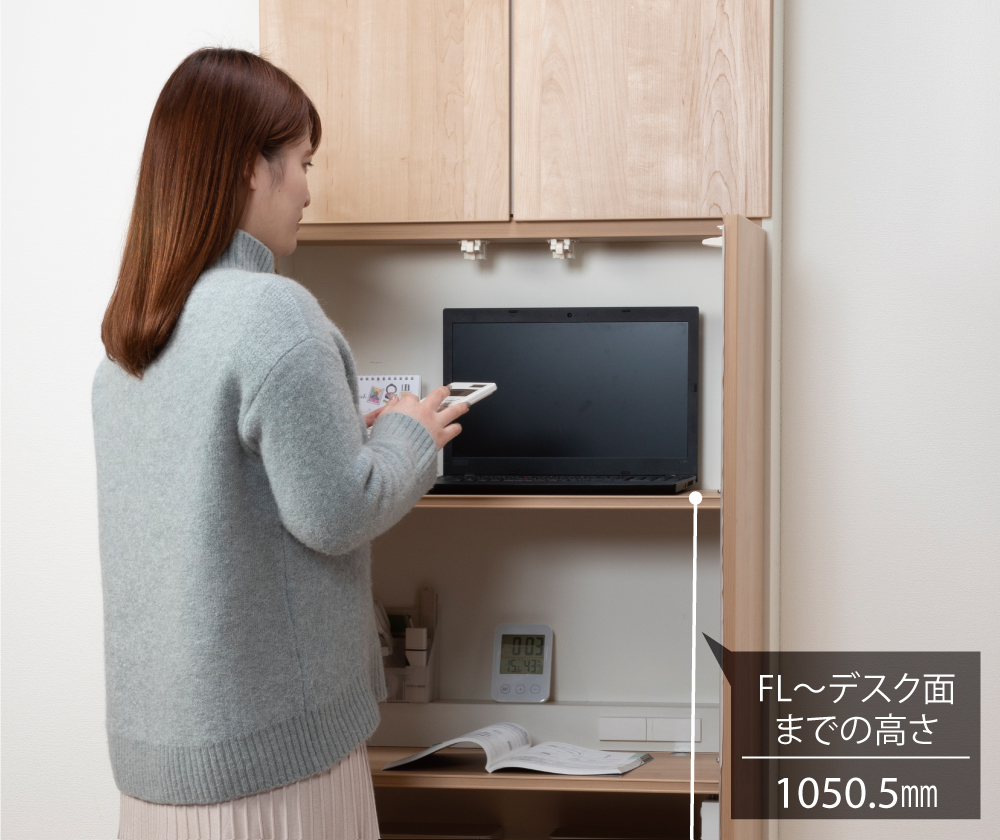 オプション品でカスタマイズ!\nスタンディング用デスクを追加すれば姿勢を変えての作業で気分転換できます。\n※スタンディング用デスクは高さ調整ができません。\n※デスクは床面より、1050.5mmです。
