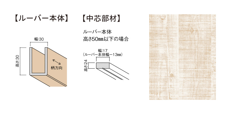 | キャプション | MF01-0112-0303 グラビオルーバーUB 本体+中芯部材(幅×高さ×長さ:30㎜×30㎜×2730㎜)〈UB12(パイン柄)〉 |