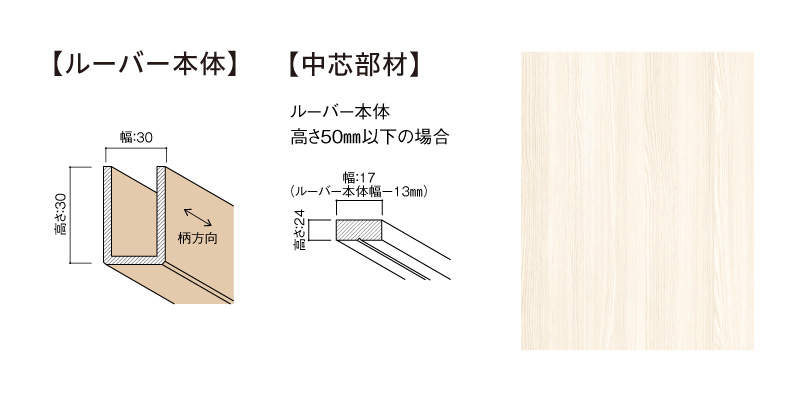 | キャプション | MF01-0135-0303 グラビオルーバーUB 本体+中芯部材(幅×高さ×長さ:30㎜×30㎜×2730㎜)〈UB35(タモ柄)〉 |