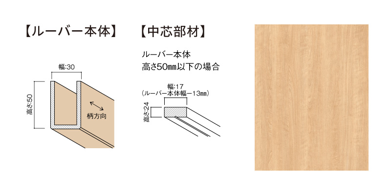 | キャプション | MF01-0173-0305 グラビオルーバーUB 本体+中芯部材(幅×高さ×長さ:30㎜×50㎜×2730㎜)〈UB73(樺桜柄)〉 |