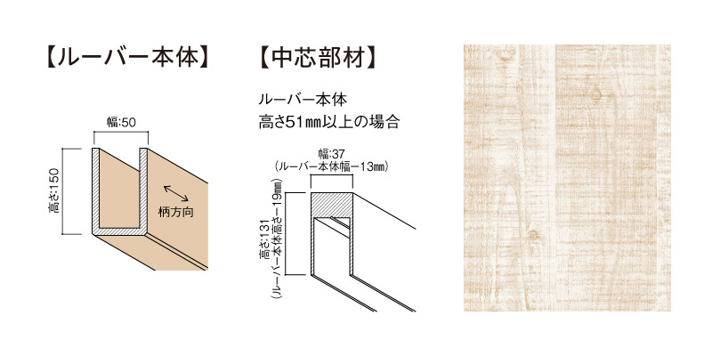 | キャプション | MF01-0112-0515 グラビオルーバーUB 本体+中芯部材(幅×高さ×長さ:50㎜×150㎜×2730㎜)〈UB12(パイン柄)〉 |