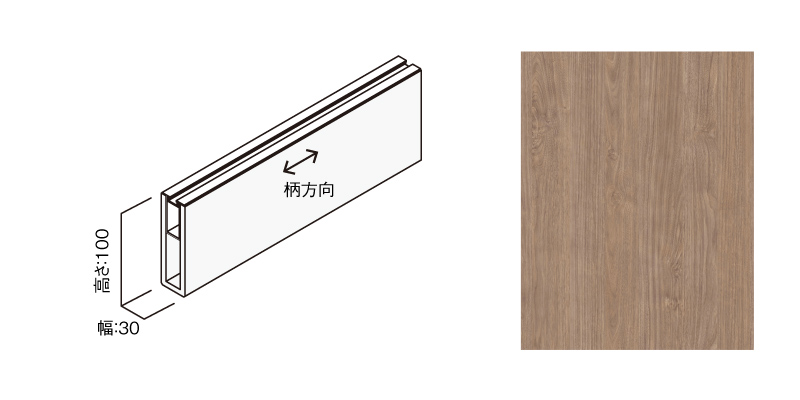 MF01-1137-5110\nグラビオルーバーUB ボルト固定式(天井施工専用)本体(幅×高さ×長さ:30㎜×100㎜×2730㎜)〈UB37(ウォールナット柄)〉