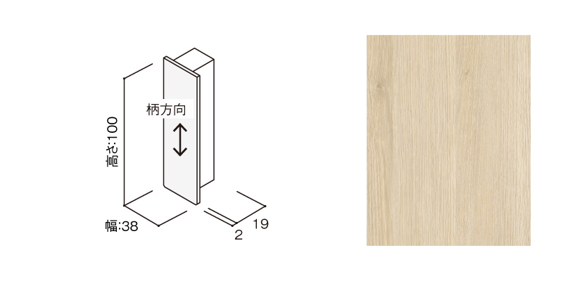| キャプション | MF01-0418-52101 グラビオルーバーUB クリップ固定式(天井施工専用)木口キャップ(幅×高さ:38㎜×100㎜)〈UB18(オーク柄)〉 |
