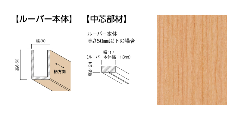 | キャプション | MFUS-0115-0305 グラビオルーバーUS 本体+中芯部材(幅×高さ×長さ:30㎜×50㎜×2420㎜)〈US15(チェリー)〉 |