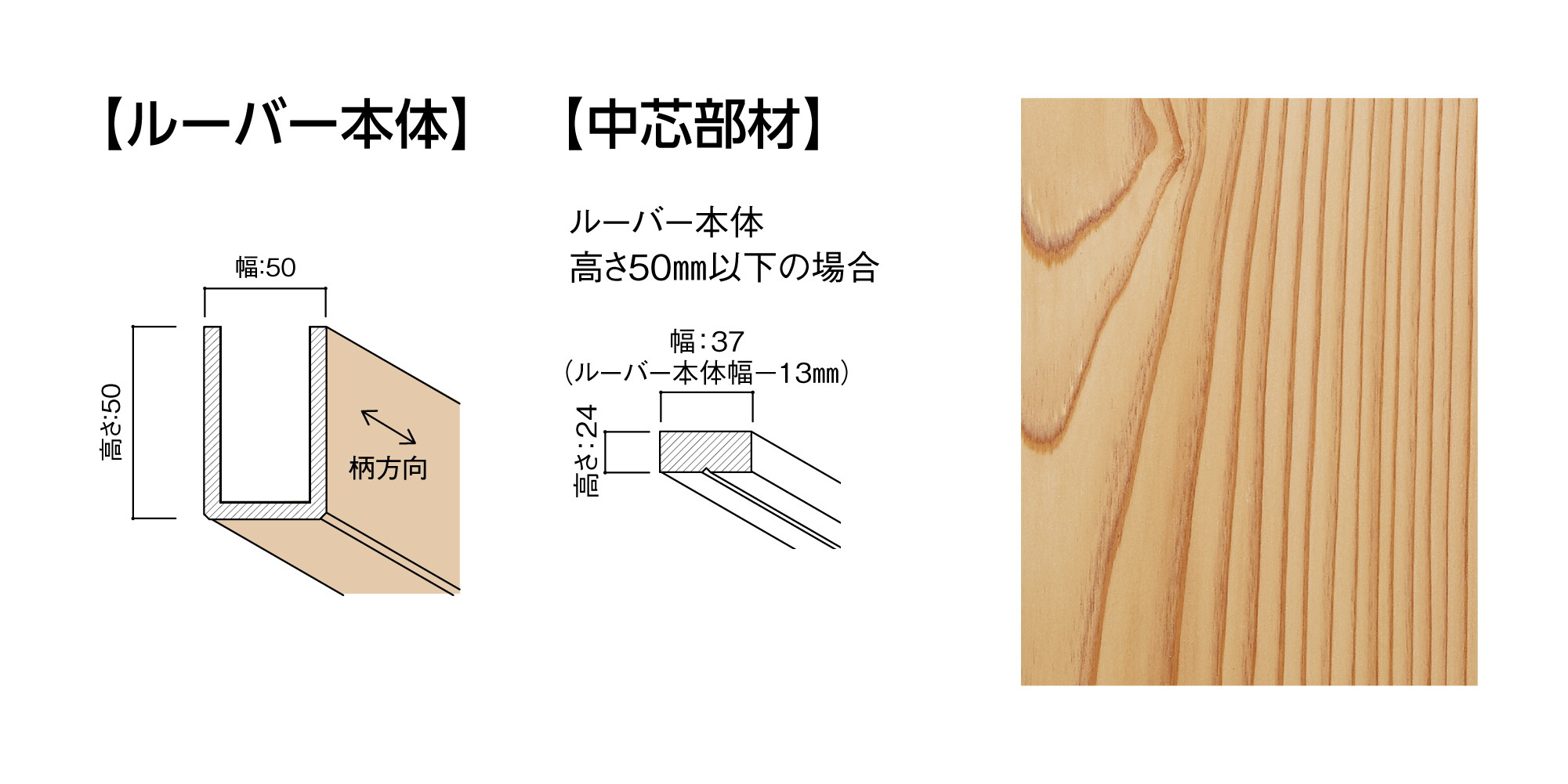 | キャプション | MFUS-0111-0505 グラビオルーバーUS 本体+中芯部材(幅×高さ×長さ:50㎜×50㎜×2420㎜)〈US11(スギ)〉 |