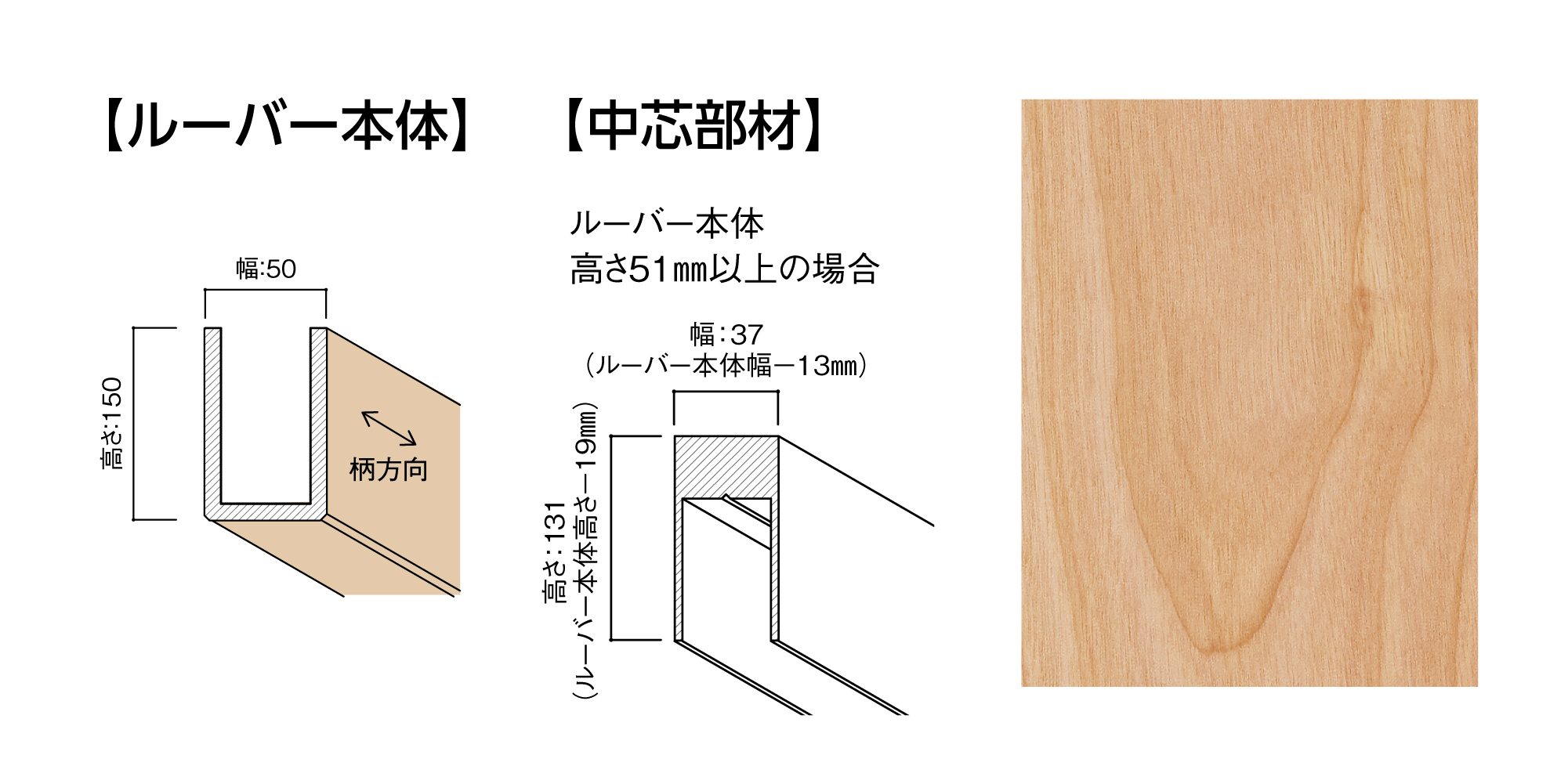| キャプション | MFUS-0118-0515 グラビオルーバーUS 本体+中芯部材(幅×高さ×長さ:50㎜×150㎜×2420㎜)〈US18(カバ)〉 |