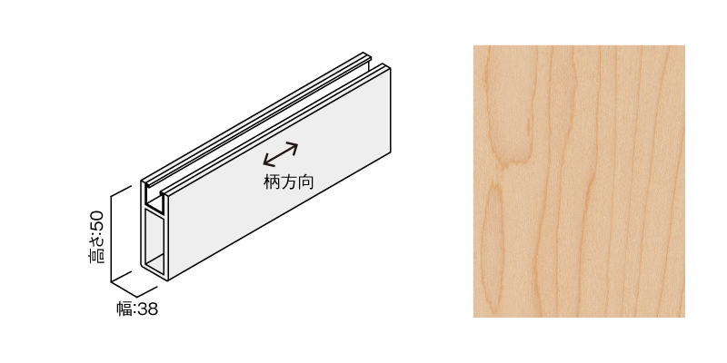 | キャプション | MFUS-1214-5205 グラビオルーバーUS クリップ固定式(天井施工専用)本体(幅×高さ×長さ:38㎜×50㎜×2420㎜)〈US14(メープル)〉 |