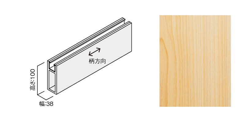 | キャプション | MFUS-1212-5210 グラビオルーバーUS クリップ固定式(天井施工専用)本体(幅×高さ×長さ:38㎜×100㎜×2420㎜)〈US12(ヒノキ)〉 |