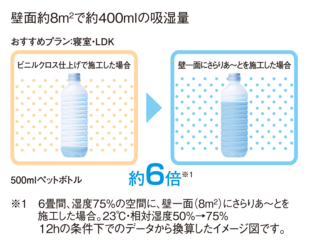 | キャプション | ■多湿時には余分な湿気を吸って結露やカビの発生を抑え、乾燥時には取り込んでいた湿気を放出し、調湿します。 |