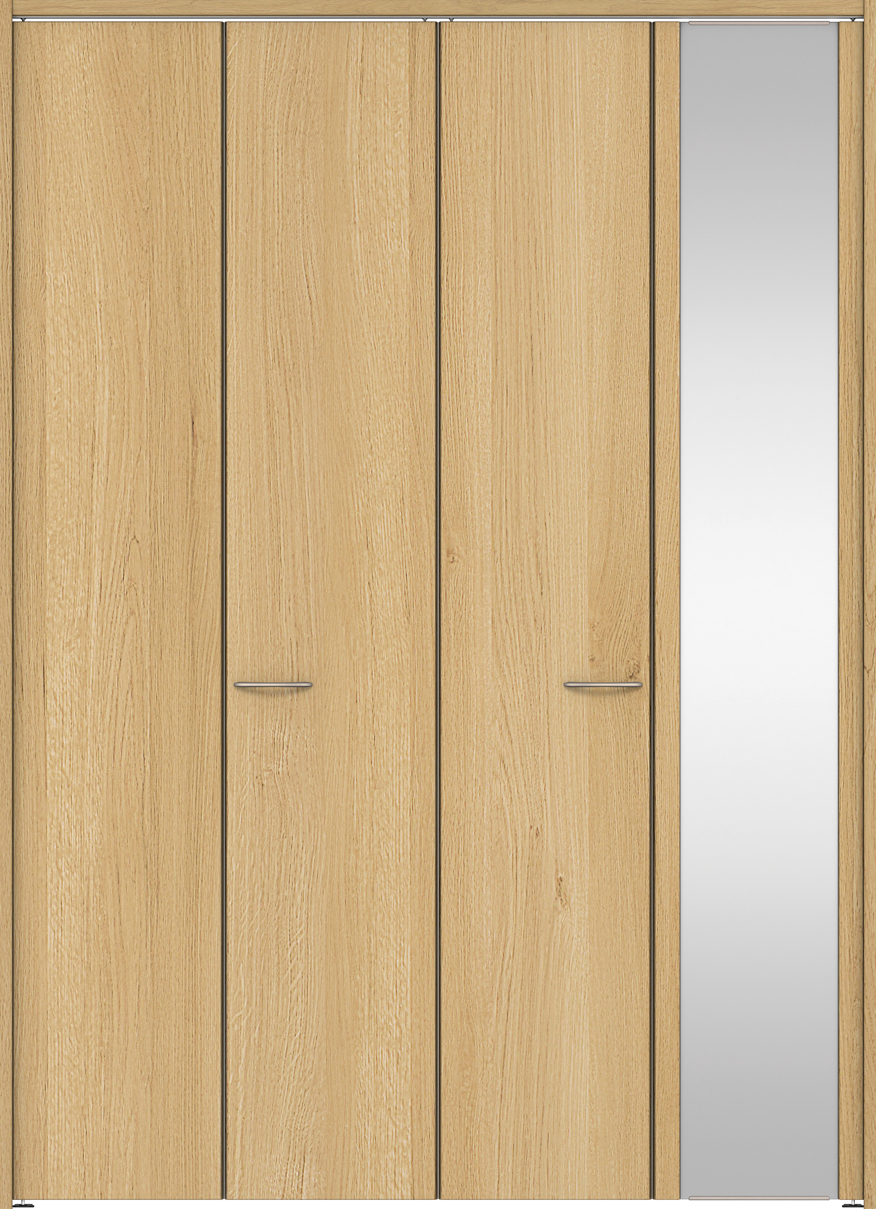 クローク収納 イエリア 折戸ユニット フラット縦木目 ミラー扉 下レールレス三方枠(固定枠) セット 1644幅(6尺小間口) 2320高 〈ライトオーカー柄〉 ハンドル角型〈鏡面クローム仕上げ〉