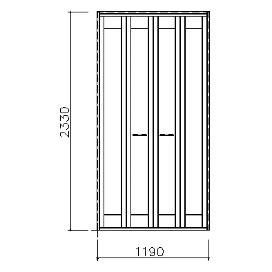 | キャプション | 折戸ユニット カマチタイプ ウッド扉 ハンドル付 見切枠B(四方枠) 2300高 1190幅(4.5尺間口) |