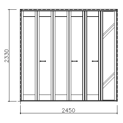 | キャプション | 折戸ユニット カマチタイプ ミラー扉 ハンドル付 見切枠B(四方枠) 2300高 2450幅(9尺間口) |