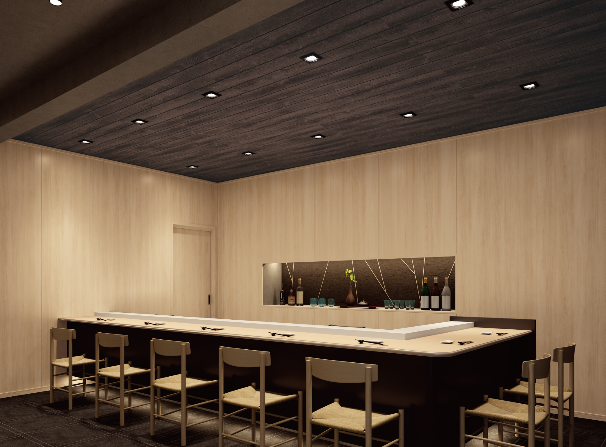 | キャプション | 天井材:グラビオ羽目板V 古木柄 〈UB86(パイン柄)〉 |