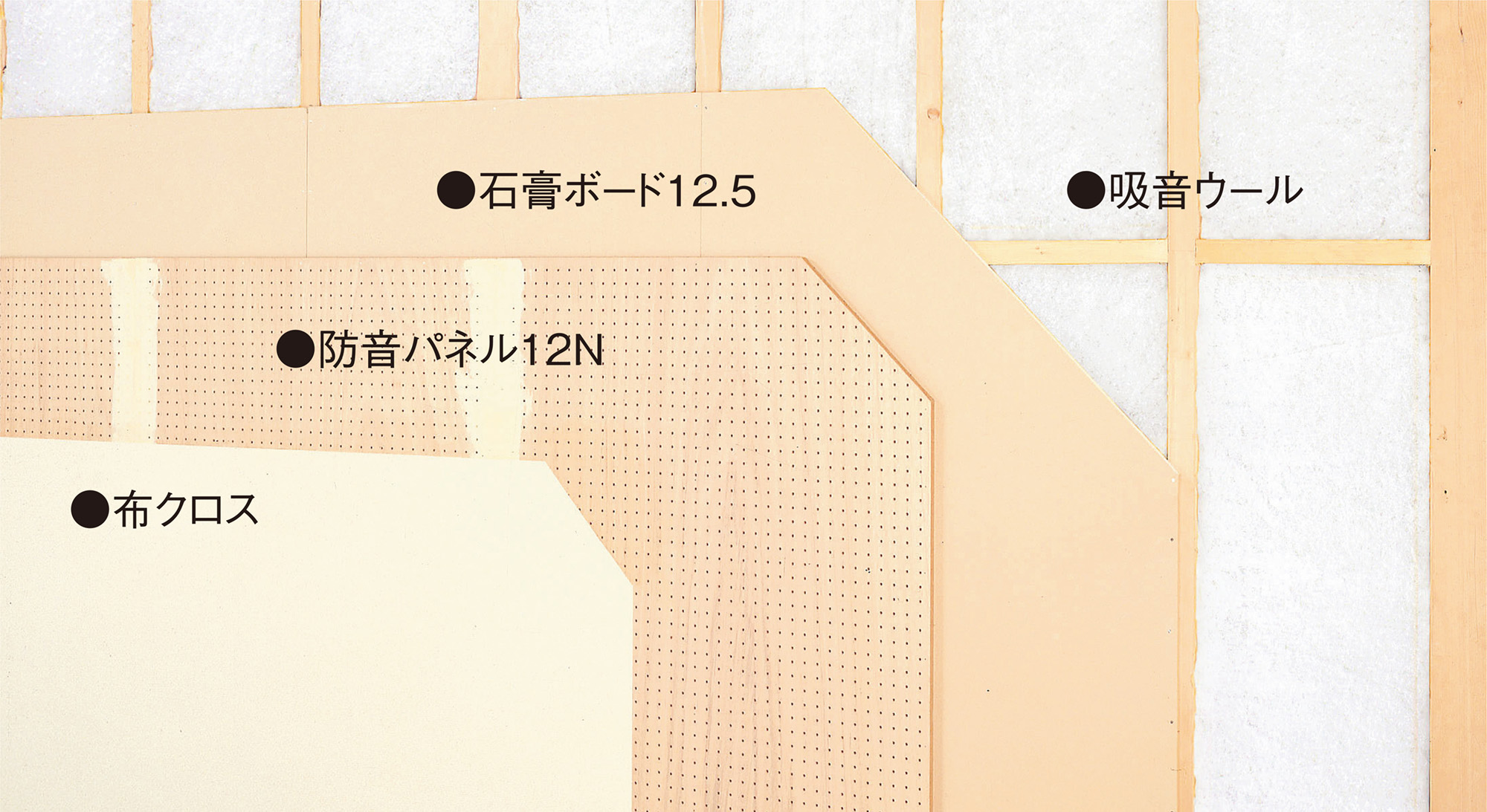 | キャプション | 壁・天井下地材:防音パネル |