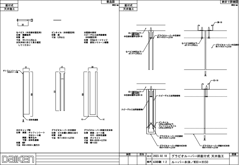 「ずっと ここちいいね」を実現する企業 DAIKEN 建材製品情報 CAD データ検索 dwg CD_B_MF01-01■■-0315.dwg dxf CD_B_MF01-01■■-0315.dxf CAD グラビオルーバーUB 直付式(天井施工)(幅×高さ:30㎜×150㎜) データ分類_第1分類 CAD データ分類_第2分類 内装ルーバー材 データ分類_第3分類 不燃造作材 データ分類_第4分類 グラビオルーバーUB データ分類_第5分類 直付式(天井施工) ファイル種類 姿図 キャプション グラビオルーバーUB 直付式(天井施工)(幅×高さ:30㎜×150㎜)