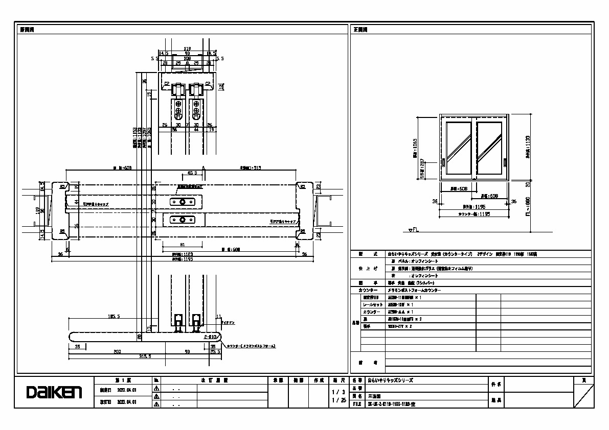 | キャプション | 1195幅 1133高 引手 角座 空錠 メラミンポストフォームカウンター |