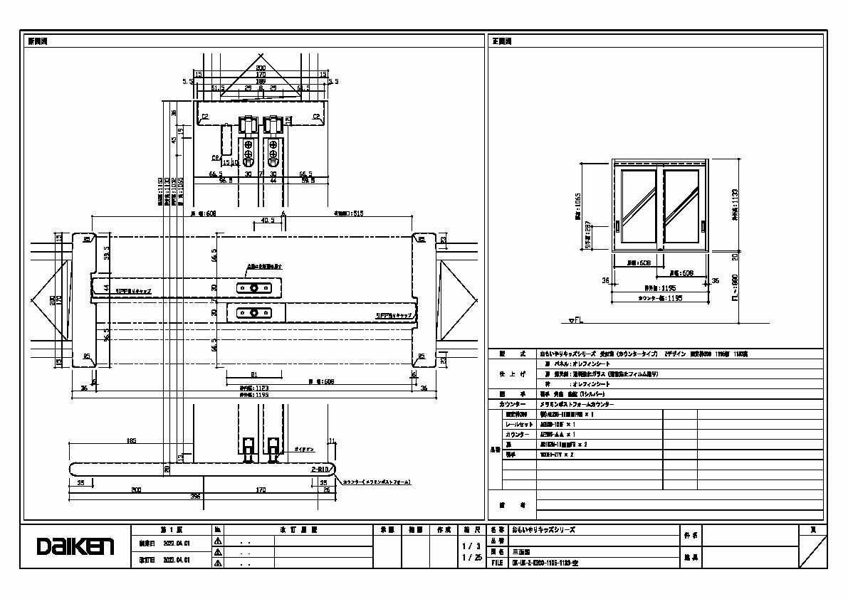 | キャプション | 1195幅 1133高 引手 角座 空錠 メラミンポストフォームカウンター |