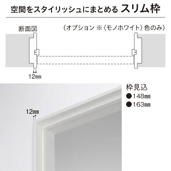 | キャプション | 枠納まり 片開きドア スリム枠 |