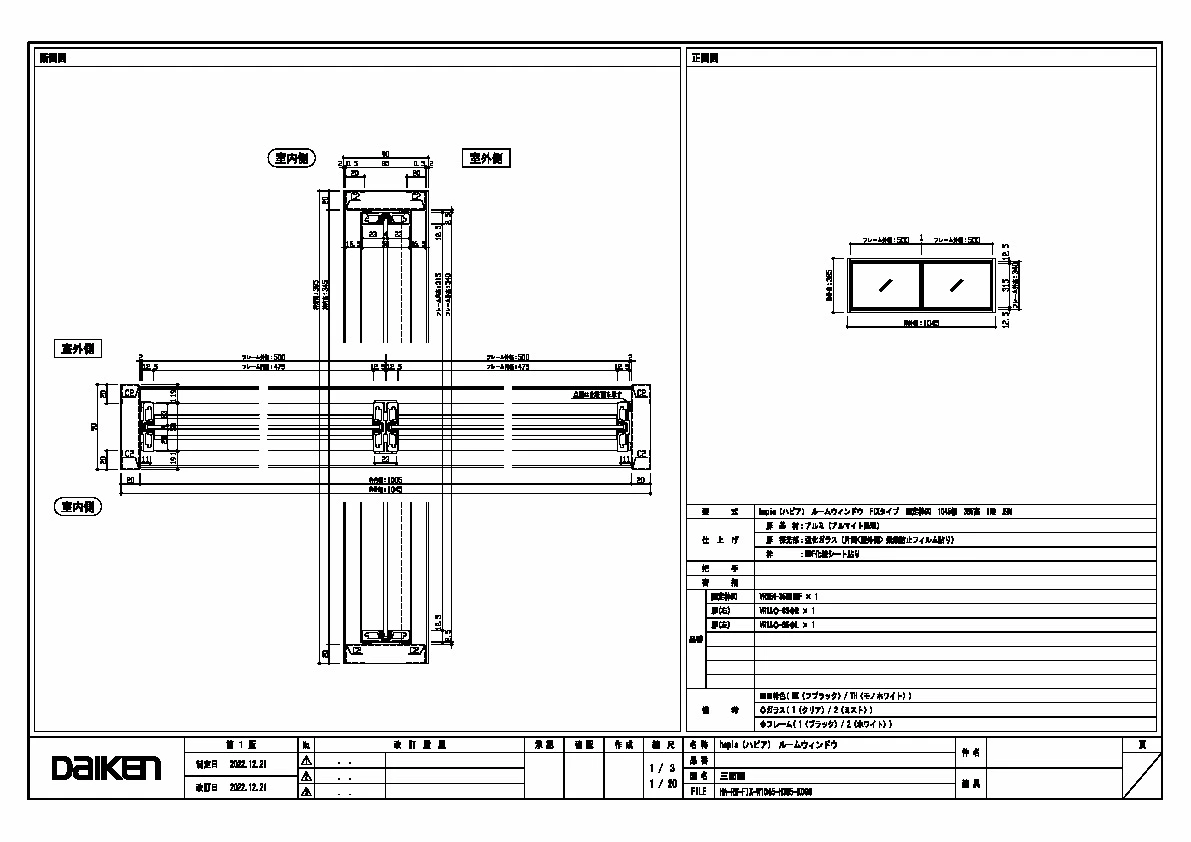 | キャプション | 1045幅 385高 固定枠090 三面図 |