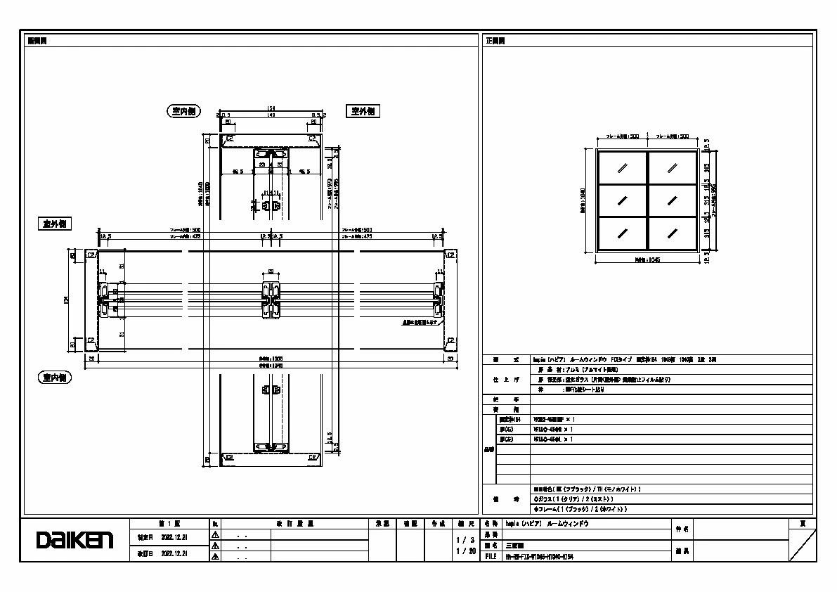 | キャプション | 1045幅 1040高 固定枠154 三面図 |