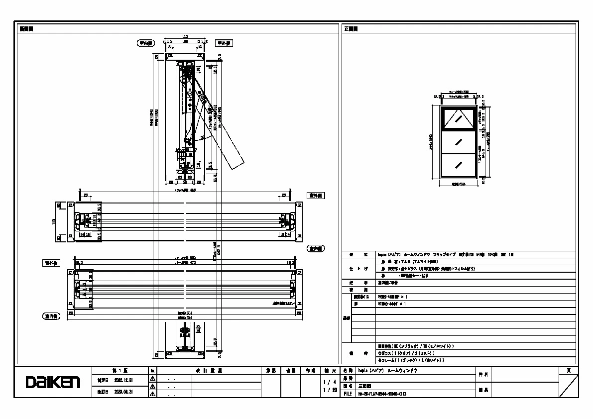 | キャプション | 544幅 1040高 固定枠113 三面図 |