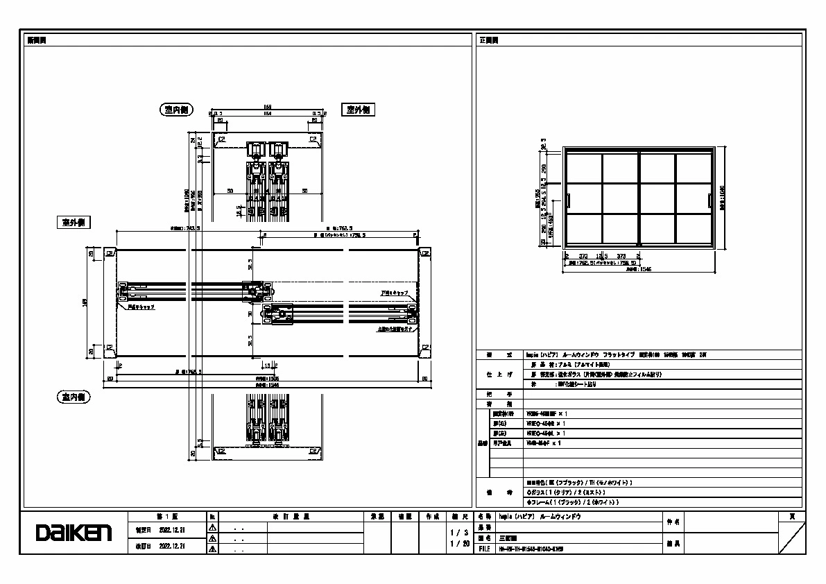 | キャプション | 1546幅 1040高 固定枠169 三面図 |