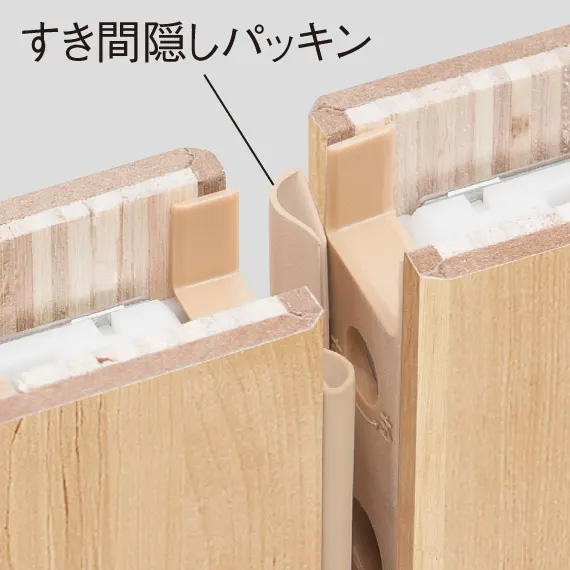 (8)扉同士のすき間防止\n引分・4枚引違用に引戸間すき間隠しパッキンをご用意しています。