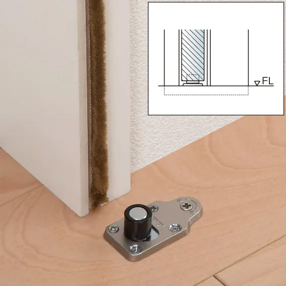 | キャプション | (片引・引違・引分・4枚引違) 床付ガイドピン(標準・同梱) 床面は敷居がなく、フラットな仕上がりです。 ・車イスでも通行しやすく、お掃除もラクラクです。 ・ 振れ止めには床付ガイドピンを採用しています。 扉を吊ったまま前後調整もできます。 |