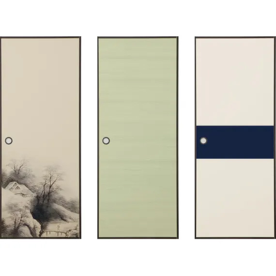 和室側を素地タイプにした場合、お好きな柄の襖紙を貼れます。\n※襖紙は別売りです。現場にてご用意ください。\n※襖紙貼りは必ず専門業者様に依頼してください。\n※クロスは貼らないでください。\n※反りや縁はがれ等の発生につきましては、品質保証対象外となります。