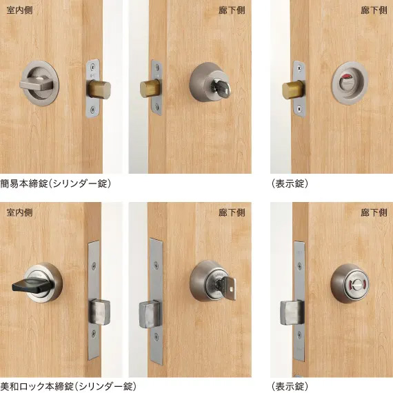 錠を取り付けることができます\n用途にあわせて簡易本締錠・美和ロック本締錠・両側サムターン錠がお選びいただけます。