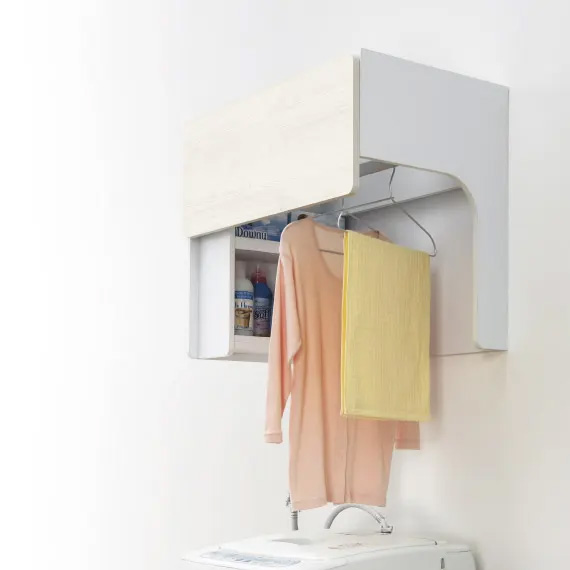 洗濯物が少ない場合は閉めた状態でコンパクトに干すこともできます。\nご注意前扉手掛かりを持って引き出し操作します。本体の設置高は操作しやすい位置にしてください。