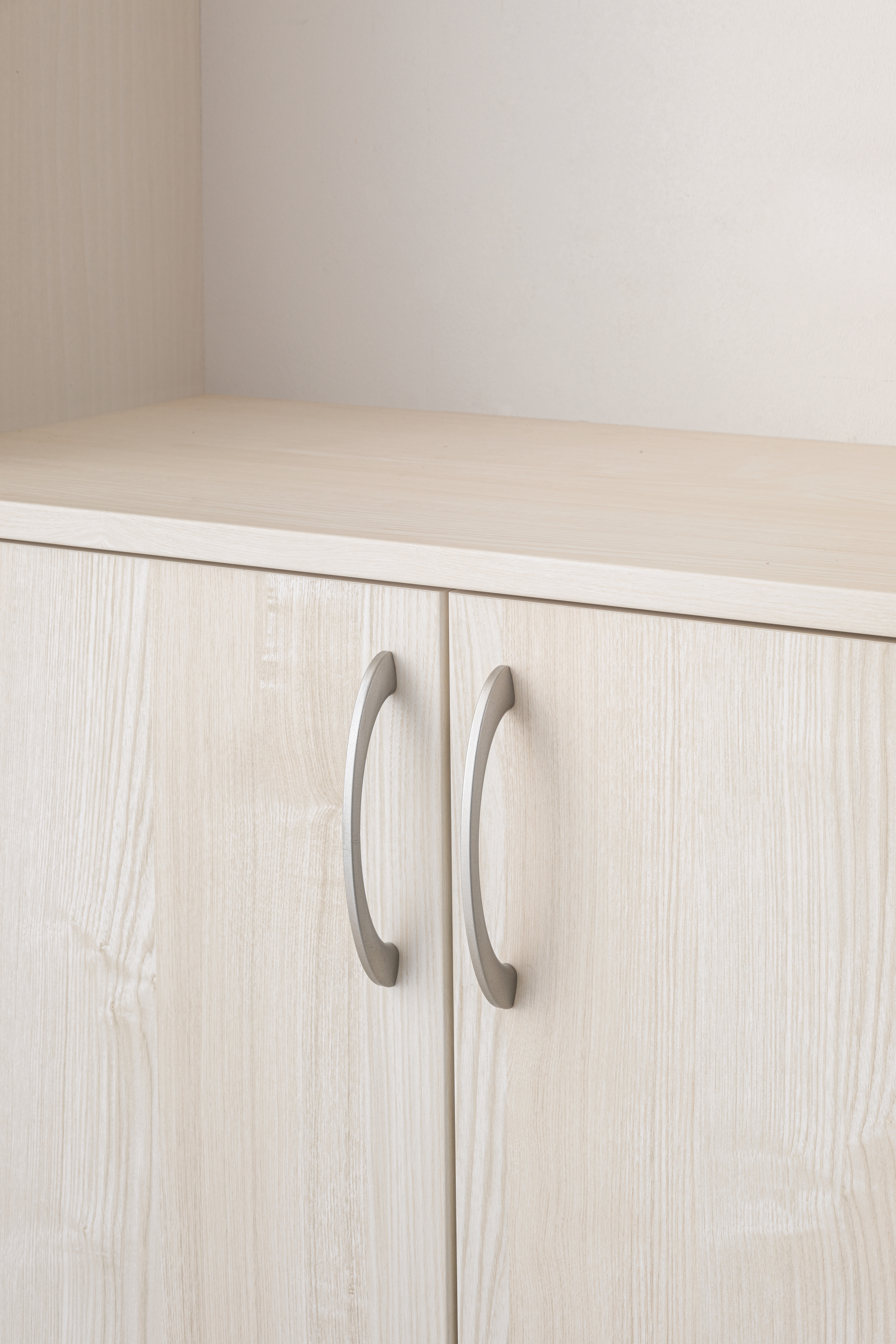 | キャプション | 玄関収納にアクセントを加えるラウンド型ハンドル。(ビスピッチ120mm) 〈Tシルバー〉 |