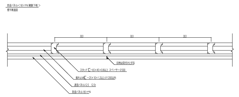 「ずっと ここちいいね」を実現する企業 DAIKEN 建材製品情報 CAD データ検索 dwg CD_B_RWB_D14.dwg dxf CD_B_RWB_D14.dxf CAD 住宅向け/壁・天井下地材 防音パネル 18シナN 断面図1(軽鉄下地 壁平断面図) データ分類_第1分類 CAD データ分類_第2分類 防音建材・音響製品 データ分類_第3分類 壁・天井防音用下地材 データ分類_第4分類 防音パネル ファイル種類 断面図 キャプション 住宅向け/壁・天井下地材 防音パネル 18シナN 断面図1(軽鉄下地 壁平断面図)